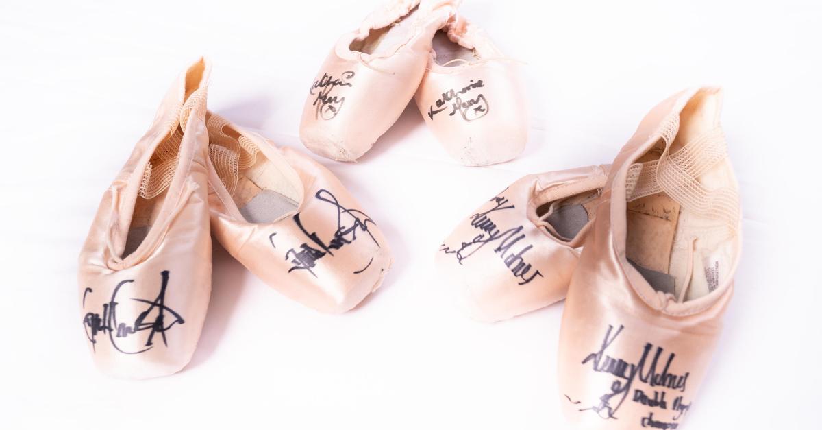For a suggested donation of £30 or more, you can have your very own pair of signed pointe shoes used on stage by one of our dancers.